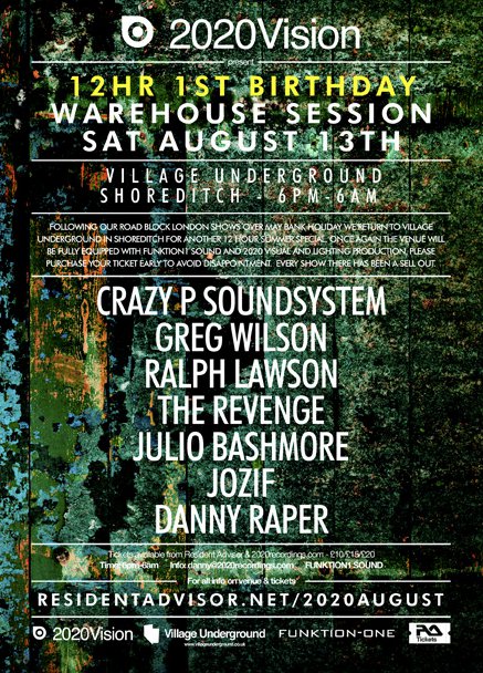 RA Tickets: 2020 Vision 1st Birthday with Crazy P, Greg Wilson, The Revenge and Julio Bashmore at Village Underground, London